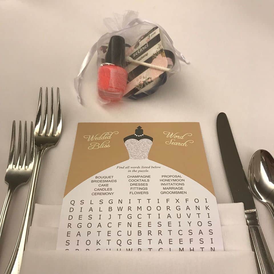 Think of what the bride’s likes and dislikes are and try to plan a theme accordingly. If your bride doesn’t like being the center of attention, consider not having her open gifts at the shower or ask for unwrapped gifts to cut down on waste. This leaves time for you to have activities planned for the shower. We have seen everything from paint classes to wine and cheese pairing. If you want to have a more traditional event where the bride opens gifts while guests watch, including some games into the day creates interest and excitement for guests. Gift bingo or having gift baskets to give out to whoever gift the bride is opening when a timer goes off, are fun ways to keep guests engaged in the process.